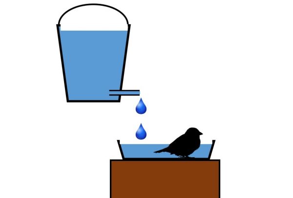 水場の上にバケツなどを下げ、少しずつ水が落ちるようにしてみましょう。