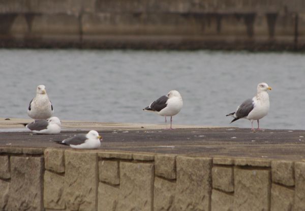 防波堤には様々な種類の鳥が休みに来るので、中には珍しい鳥がまぎれていることもあります。