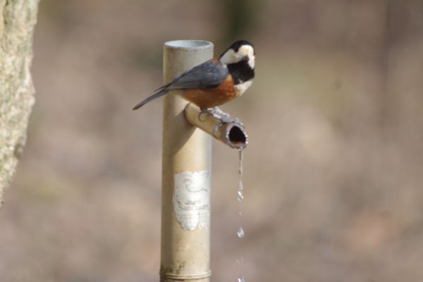 離れた場所から観察していると、ヤマガラやオナガなどが訪れることがあります。