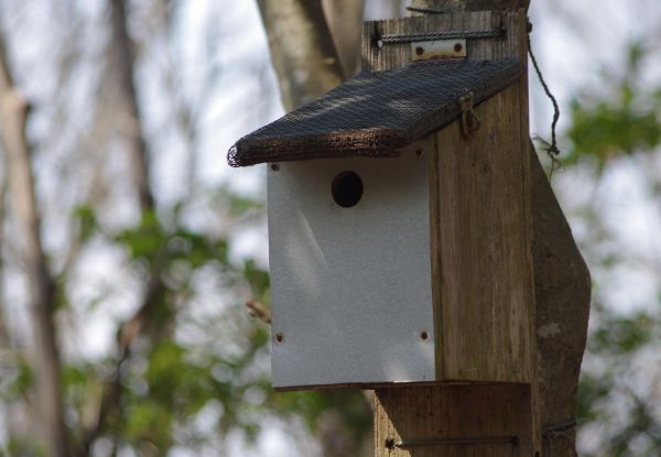 森林の付近や中には、ところどころに巣箱が設置されていることがあります。